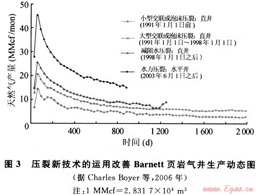 3.2 壓裂增產(chǎn)技術的進步顯著提高了頁巖氣的產(chǎn)量