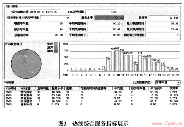 工具2—服務(wù)指標(biāo)管理工具。圖2所示為服務(wù)指標(biāo)管理工具的主要功能之一——熱線綜合服務(wù)指標(biāo)監(jiān)控界面。