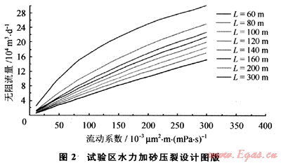 采用節(jié)點(diǎn)模型開展地層流動物性與裂縫長度之間相關(guān)性分析、預(yù)測不同裂縫與地層匹配情況下的無阻流量、根據(jù)前期試驗成果及微型注入測試分析,建立了試驗區(qū)壓裂設(shè)計圖版(圖2),該圖版與現(xiàn)場試驗結(jié)果具有很好的一致性。