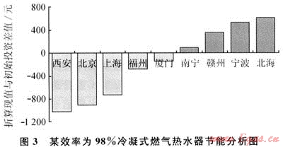 2005年起,國(guó)內(nèi)部分熱水器廠家開(kāi)始生產(chǎn)銷售冷凝式熱水器,其中部分產(chǎn)品的熱工性能已達(dá)到或超過(guò)國(guó)外同類產(chǎn)品。現(xiàn)采用凈現(xiàn)值法對(duì)冷凝式熱水器的節(jié)能情況做一簡(jiǎn)略分析。