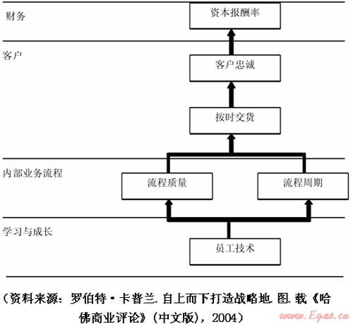 由上圖可知,由于內(nèi)部業(yè)務(wù)流程的改善,流程質(zhì)量將會(huì)提高,流程周期將會(huì)縮短,將會(huì)實(shí)現(xiàn)“按時(shí)交貨”和“客戶(hù)忠誠(chéng)”,最終實(shí)現(xiàn)“資本報(bào)酬率”提升。