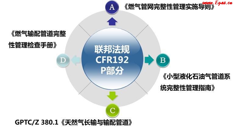 CFR第192章是管道輸送氣體聯(lián)邦安全標準,對長輸和輸配管道系統(tǒng)安全運行作出了規(guī)定,其中P小節(jié)《SubpartP—GasDistributionPipelineIntegrityManagement》提出燃氣輸配管道完整性管理的要求,是美國燃氣運營企業(yè)開展完整性管理的綱領(lǐng)性文件。法規(guī)明確要求所有的城市燃氣運營企業(yè)應當在2011年8月2日開始制定和實施管道完整性管理方案,并提出了燃氣輸配管道系統(tǒng)(包含液化石油氣系統(tǒng))開展完整性管理的最低要求。