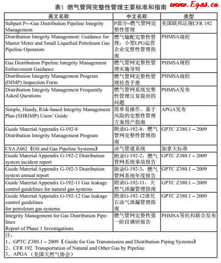 ANSI/GPTCZ380.1《天然氣長輸與輸配管道》標準由GPTC制定,主要是針對天然氣管道的輸送和輸配的規(guī)定,附錄中G-192-8章節(jié)為《燃氣輸配管道完整性管理指南》,按照聯(lián)邦法規(guī)規(guī)定的七個要素展開,敘述了燃氣輸配管道開展完整性管理的內(nèi)容,是美國燃氣運營企業(yè)開展完整性管理試點工作的指南。該指南中提供了一些實用的方法幫助燃氣企業(yè)制定完整性管理方案,建立完整性管理系統(tǒng)。