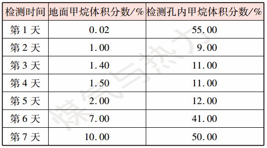 表1 E管道地面與孔內(nèi)甲烷體積分?jǐn)?shù)