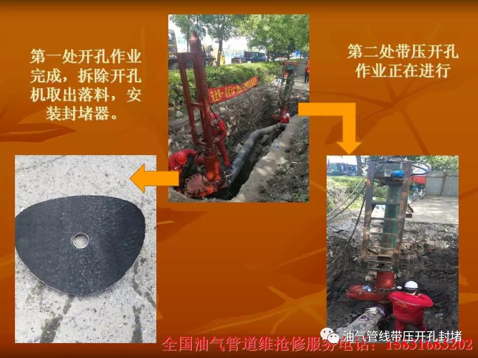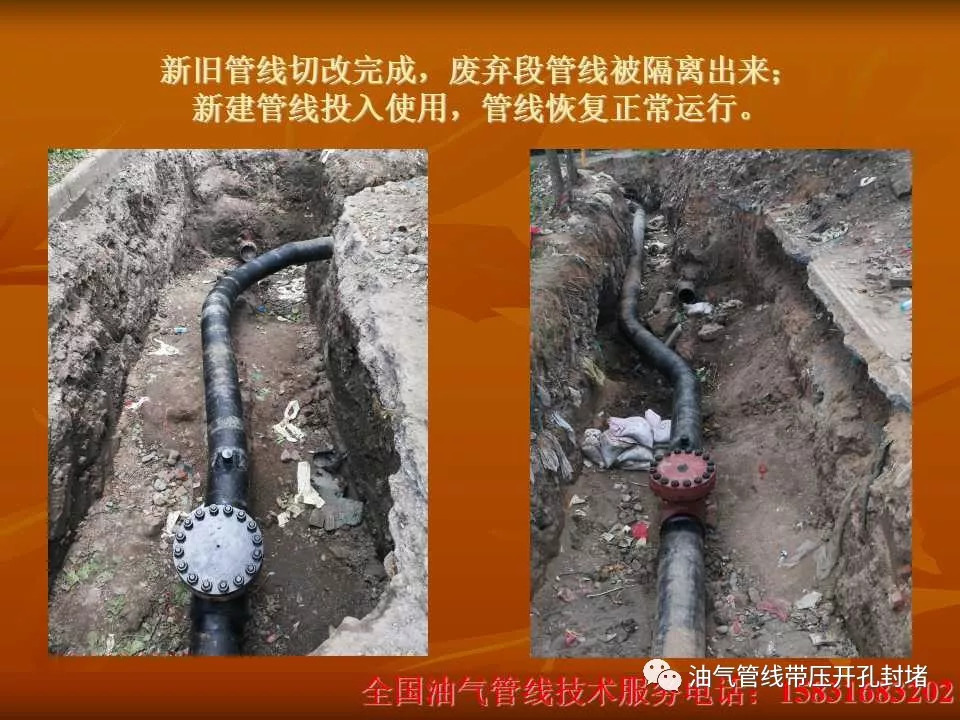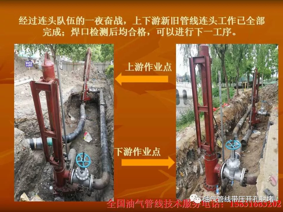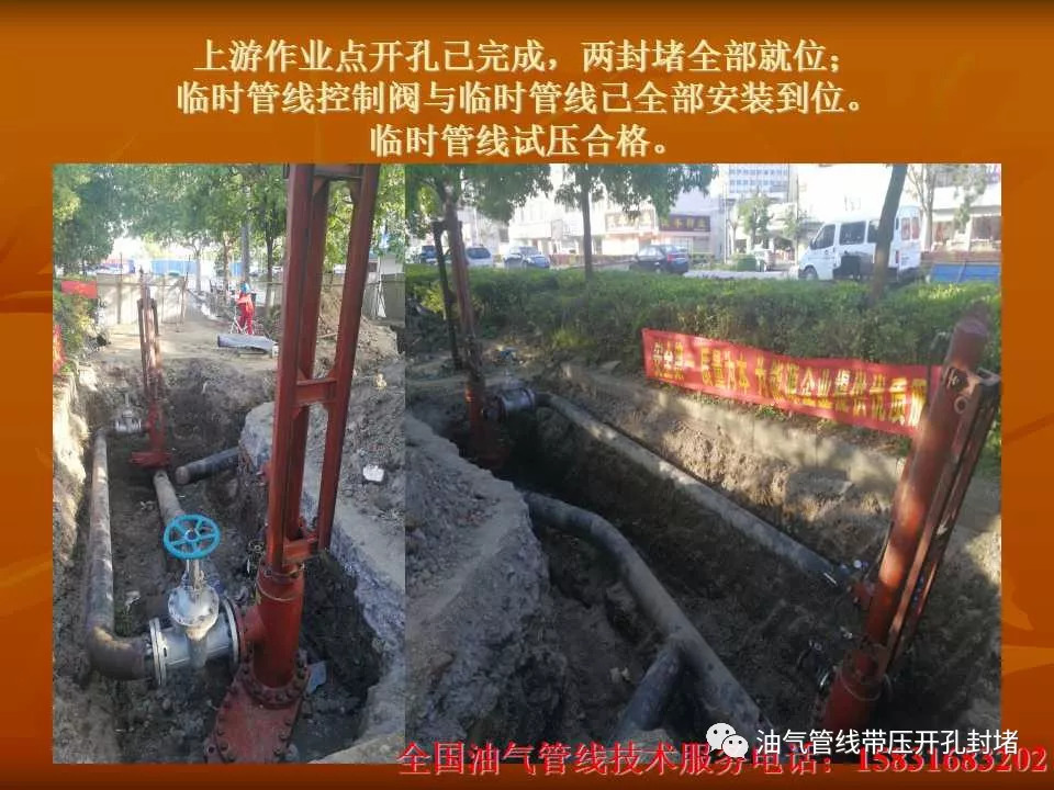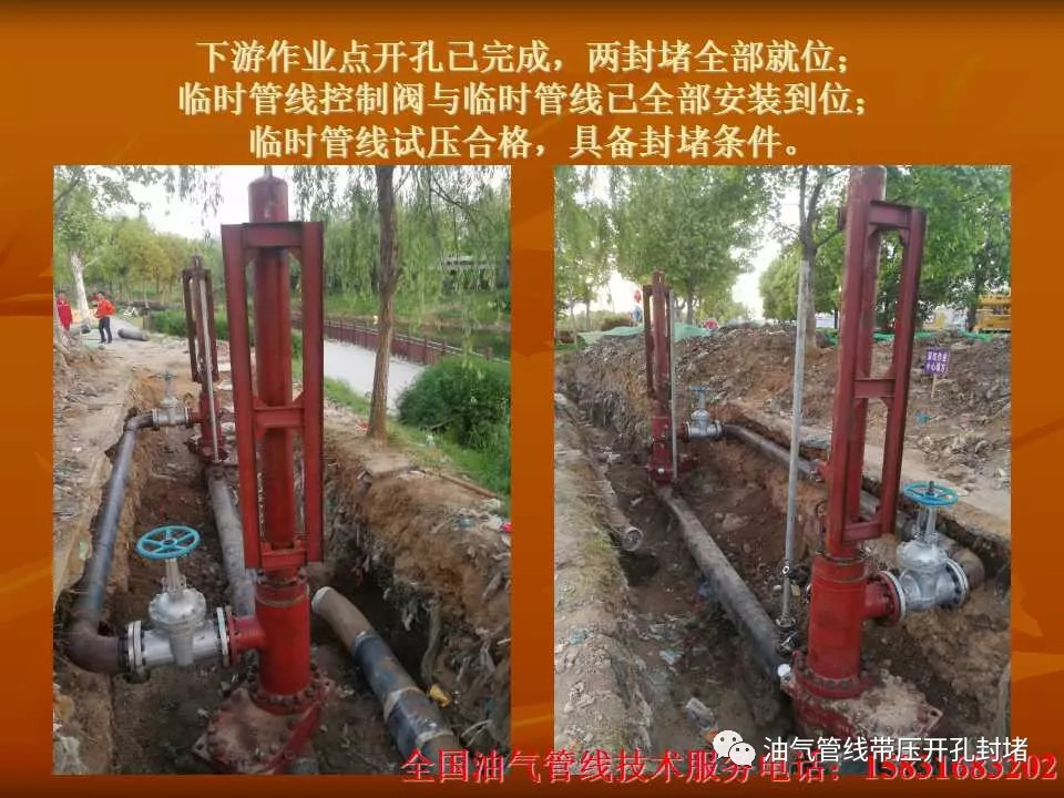 本次改造施工采用四封四堵不停輸封堵工藝,該種工藝優(yōu)點(diǎn)在于:所有工序均在不影響管線內(nèi)介質(zhì)正常輸送的狀態(tài)下進(jìn)行且減少了長距離鋪設(shè)旁通管線的工作量,縮短了施工周期,使工作進(jìn)行的井然有序,安全可靠。