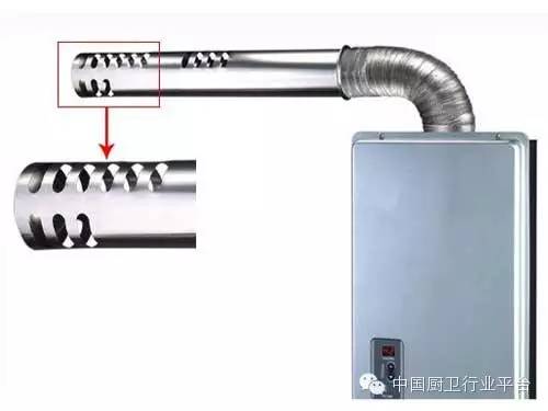 這種排煙管的前部是封死的,周圍設有小孔,用于排出煙氣。當冷空氣吹入排煙管時,從一側小孔進入就立即從另一側小孔排出,由于前部封死,冷空氣不會灌入到熱水器里面,能夠有效防止凍裂。