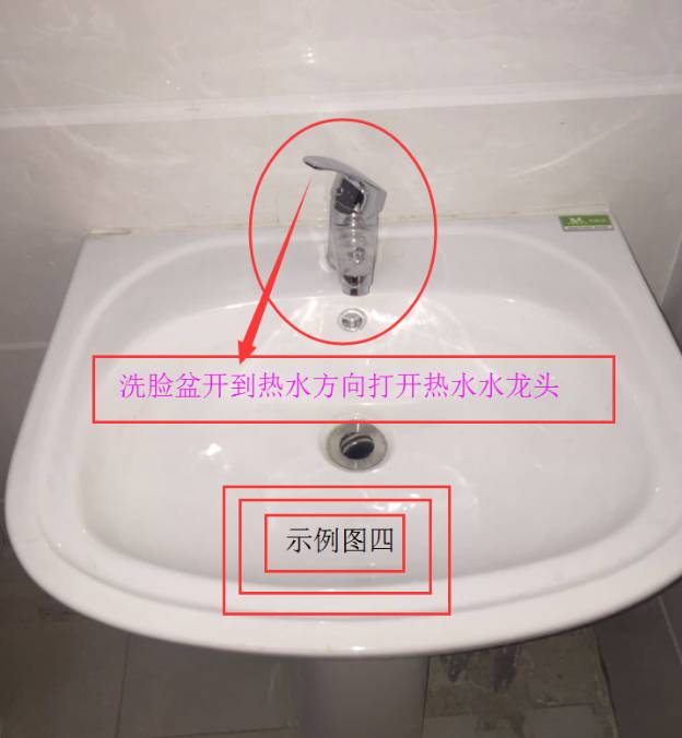 第二步:打開洗菜盆或者洗臉盆的熱水水龍頭。