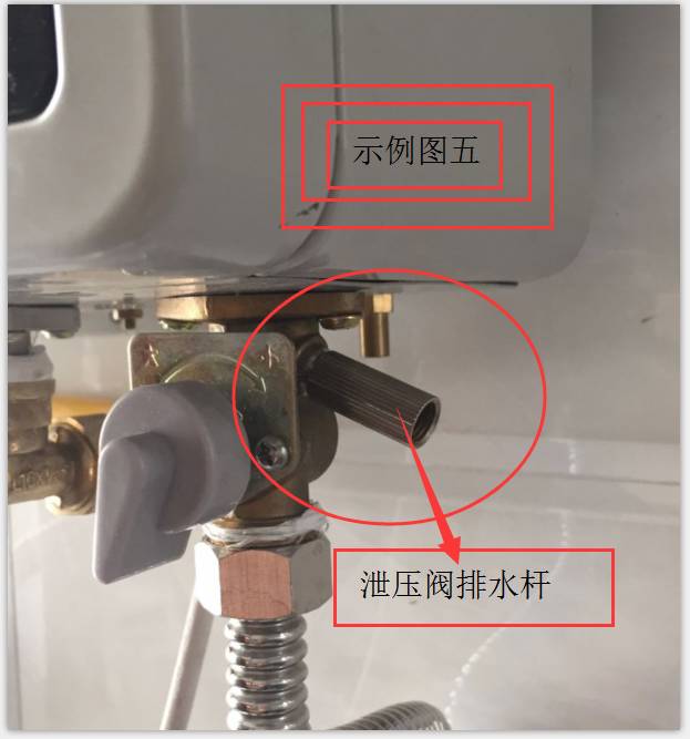 第三步:逆時針旋轉(zhuǎn)擰開圖五的泄壓閥排水桿