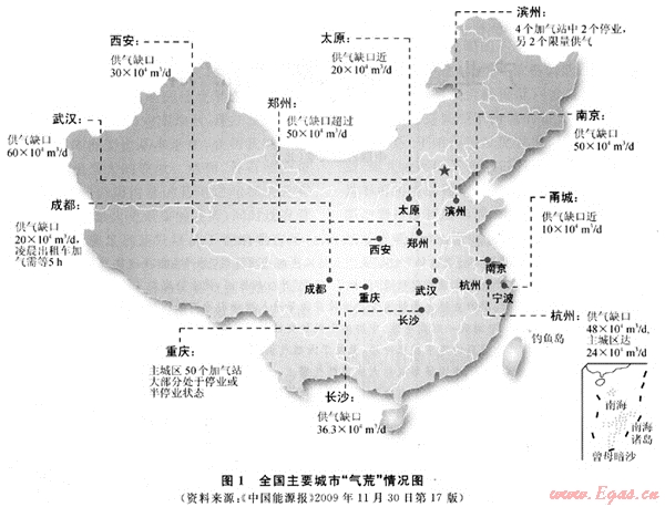 2009年11月,隨著大范圍雨雪天氣的來(lái)臨,中國(guó)許多地區(qū)出現(xiàn)了“氣荒”——天然氣供應(yīng)緊張的局面。過(guò)去幾年間,也出現(xiàn)過(guò)天然氣供應(yīng)緊張現(xiàn)象,但像今年如此大規(guī)模天然氣供應(yīng)缺口,還是首次。