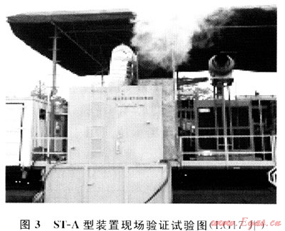 圖3是ST-A型裝置(單機(jī)配帶)在LG17井現(xiàn)場對(duì)比試驗(yàn)運(yùn)行實(shí)況,圖4是ST-C型裝置(三機(jī)配帶)在合川001-6-X3井現(xiàn)場安裝實(shí)況,均隨鉆井全周期同步運(yùn)行,取得了廢水源頭治理和廢氣消煙、降溫降噪的良好效果。