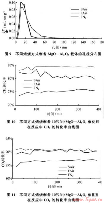 表3 不同焙燒方式制備4%MgO-Al203載體的物理性質表