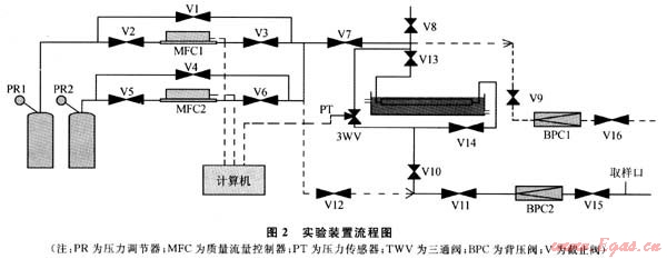 利用如圖1所示的N2吸附裝置,測(cè)定77K下N2在各脫硫劑上的吸附等溫線,用BET法計(jì)算比表面積,用相對(duì)壓力0.99時(shí)的吸附量計(jì)算孔容,用BJH法計(jì)算了脫硫劑的孔徑分布特征[12~13]。