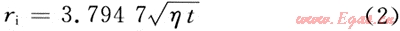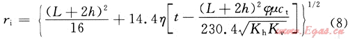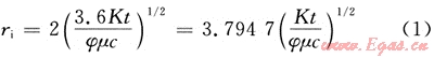 石油工業(yè)中國際上對于探測半徑的定義為:在某一確定的瞬時,給井中施加一個壓力脈沖,對該脈沖響應(yīng)達到最大值的位置就稱為探測半徑。在標(biāo)準(zhǔn)單位制式下,探測半徑表示為[1]:
