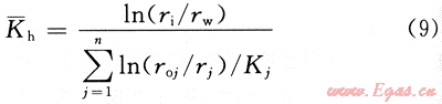 當(dāng)考慮徑向復(fù)合油氣藏的情形時,本文參考文獻[5]、[6]給出了平均水平滲透率可表示為:
