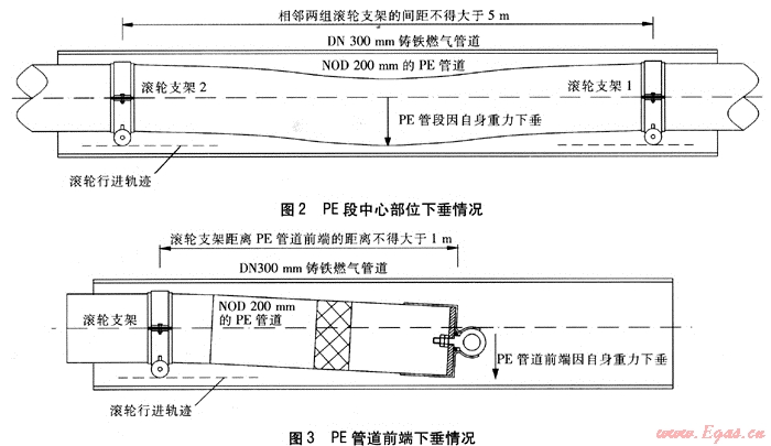 關(guān)鍵詞:燃?xì)夤艿佬迯?fù);鑄鐵管道;聚乙烯管道;滾輪支架;穿插