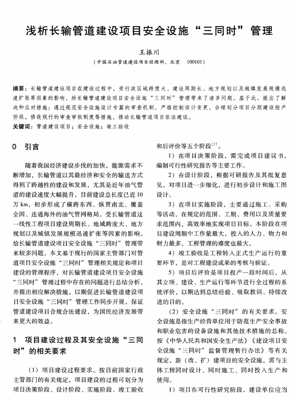 淺析長輸管道建設(shè)項(xiàng)目安全設(shè)施三同時(shí)管理