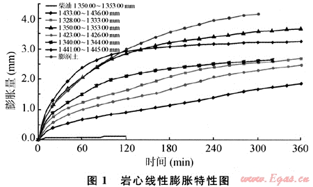 2) 儲(chǔ)層巖石中黏土礦物含量高。黏土礦物中以膨脹性蒙脫石為主,黏土線性膨脹大,水敏性極強(qiáng)。巖石中黏土礦物含量10%~30.0%,其中蒙脫石含量為70%~80%,巖心粉清水線性膨脹量達(dá)到4.0mm,水敏指數(shù)0.71~0.95,水敏性極強(qiáng)(見圖1、表1)。