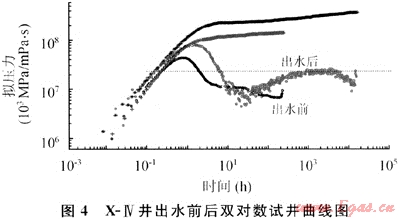 由于啟動壓力梯度的影響,許多井試井解釋出的邊界可能就是這種由于存在著啟動壓力梯度現(xiàn)象而導致的高低滲透層之間的不流動邊界。在實際的開發(fā)中,隨著時間的延續(xù),流動區(qū)域地層壓力的下降,原來未動用的低滲區(qū)域可以得到動用。從試采時間較長的X-Ⅲ井的一年半時間內(nèi)的先后兩次關(guān)井壓力恢復(fù)試井解釋看,存在著流動區(qū)域擴大的趨勢,解釋的流動區(qū)域的范圍擴大了40m左右。