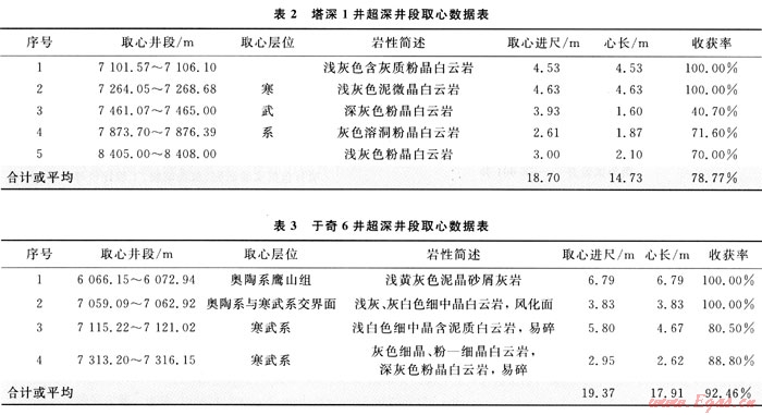 塔深1井是目前亞洲最深的井,完鉆井深達(dá)8408m,鉆探目的是探索下古生界寒武系大型建隆圈閉的含油氣性,實(shí)現(xiàn)新領(lǐng)域的導(dǎo)向性突破。該井超深井段取心井眼尺寸Φ165.1mm,最大井斜25°,取心工具為川5-5,在井段7101.57~8408.00m取心5次,進(jìn)尺18.70m,心長(zhǎng)14.73m,平均收獲率為78.77%,取心段巖性以白云巖為主,巖性裂縫發(fā)育,非常破碎,取心施工難度非常大。