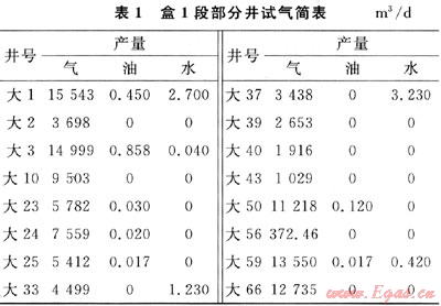 表1給出了盒1段氣層部分生產(chǎn)井的試氣結(jié)果,從結(jié)果中可以明顯地看出,盒1段儲(chǔ)層的絕大部分井不產(chǎn)水,只要少部分井微量產(chǎn)水,微產(chǎn)水量不會(huì)對(duì)氦氣泡沫欠平衡施工造成影響。