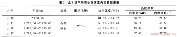 為了研究盒1段氣層欠平衡水平井在砂巖內(nèi)鉆進(jìn)時(shí)的井壁穩(wěn)定性問(wèn)題,對(duì)盒1段氣層直井橫向取心后,進(jìn)行了巖石力學(xué)實(shí)驗(yàn)。
