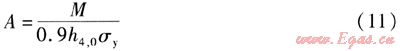 底板計(jì)算截面所需的鋼筋截面積A的計(jì)算式為: