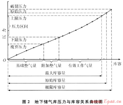 氣庫運行壓力與氣庫庫容量互為因果關系。氣庫運行壓力區(qū)間以保證實現(xiàn)氣庫的工作氣量為目的。氣庫下限壓力以保證氣庫最低調(diào)峰能力和維持單井最低生產(chǎn)能力為目的;氣庫上限壓力以不破壞地層巖石結(jié)構(gòu),保證氣庫封閉性為目的;上下限壓力還與單井注采氣能力、井數(shù)、調(diào)峰氣量與注氣量、工作氣量、經(jīng)濟效益、井口外輸氣壓力與注氣壓縮機等級、注采氣設施的匹配性有關,需要地下、井筒和地面系統(tǒng)協(xié)同優(yōu)化選定。