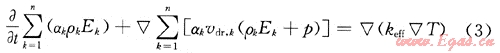 式中keff為有效熱傳導(dǎo)率,W/(m·k);Ek為第k相流體的能量,J;T為溫度,K。