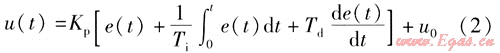 由于計(jì)算機(jī)控制是采取采樣方式控制的,它只能根據(jù)采樣時(shí)刻的誤差值計(jì)算控制變量(調(diào)整量)u,因此,必須對(duì)傳統(tǒng)算法進(jìn)行修正才能用計(jì)算機(jī)軟件來(lái)實(shí)現(xiàn)適用于計(jì)算機(jī)的控制算法[4~7]。時(shí)間t可采用下式給出: