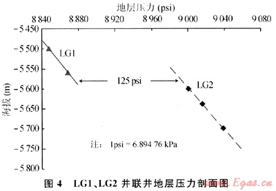 2.3 LG1井、LG2井井區(qū)與LG3井、LG6井都為不同的壓力系統(tǒng)