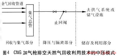 圖4是CNG加氣槍排空天然氣回收利用技術(shù)的中壓模式。