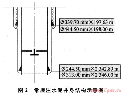 6) 常規(guī)注水泥井身結(jié)構(gòu)示意圖(圖2)。