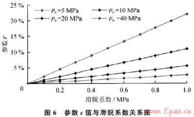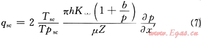 由圖6及式(11)可以看出:滑脫系數(shù)(b)越大,供給邊界壓力(pe)越小,參數(shù)ε越大,氣體滑脫對氣井生產(chǎn)影響越大;當(dāng)邊界壓力(pe)較低時(如pe≤5MPa),參數(shù)e受滑脫系數(shù)(b)影響較大,氣體滑脫效應(yīng)對氣井生產(chǎn)影響較大;而當(dāng)邊界壓力(pe)較大時(如pe≥10MPa),參數(shù)ε受滑脫系數(shù)(b)影響較小,氣體滑脫效應(yīng)對氣井生產(chǎn)影響較小,小于10%。這一計算結(jié)果與室內(nèi)巖心滲流實驗結(jié)果也是完全一致的,說明低滲氣藏儲層滑脫效應(yīng)決定于孔隙壓力大小的結(jié)論是正確的。