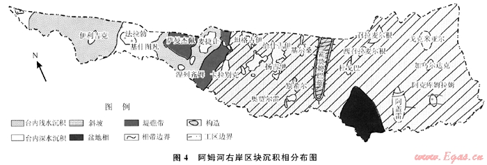 在阿姆河右岸地區(qū)西北部H2S含量普遍較高的背景下,有少量氣田H2S含量低,這些低H2S含量的氣田,正好位于開闊臺地深水沉積區(qū)(圖4),沉積物較細,類似于東南部高伽馬泥巖層,有較好的封隔性能,從而阻止了烴類和膏鹽巖的直接接觸,硫酸鹽熱化學還原反應不能夠大量發(fā)生,造成H2S含量較低。