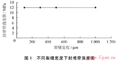 2) 不同裂縫寬度下的封堵帶強度實驗結(jié)果如圖1所示。由圖1看出,當(dāng)基漿中加入防漏堵漏材料的粒徑與巖樣的裂縫寬度相匹配時(架橋顆粒直徑與裂縫寬度比值為0.85~1),形成的封堵帶都能夠承受12MPa以上的壓力而不被破壞。