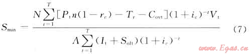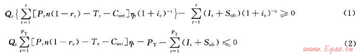 單井初期產(chǎn)量界限指在一定的開發(fā)技術(shù)和財稅體制下,氣井所獲得的收益能彌補全部投資、采氣操作費并獲得最低收益率時初期所應達到的最低產(chǎn)量,當氣井初期產(chǎn)量大于這一值時,則認為經(jīng)濟上是可行的。計算方法為同時滿足公式(1)和(2)中的Qc的值。即