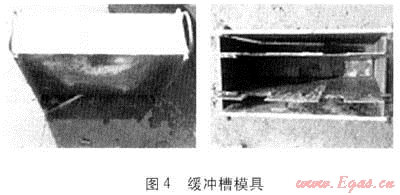 a. 使用緩沖槽模具(見(jiàn)圖4),將水、水泥、砂子、石子按照體積比為0.6:1:2:4的配比澆筑混凝土緩沖槽(見(jiàn)圖5)若干。