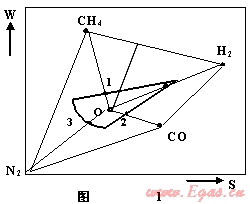 城鎮(zhèn)中占絕對(duì)多數(shù)的民用燃具是大氣式燃?xì)庥镁摺:饬看髿馐饺細(xì)庥镁哒9ぷ鞯闹匾闹笜?biāo)是:不發(fā)生離焰、回火、黃焰、煙氣中CO不超標(biāo)和不結(jié)碳等。影響這些現(xiàn)象的燃?xì)庑再|(zhì)是華白數(shù)與燃燒速度,以及燃具的構(gòu)造等。為了更具體顯示燃具適應(yīng)域,取一個(gè)以華白數(shù)W為縱坐標(biāo),以燃燒速度S為橫坐標(biāo)的坐標(biāo)圖。圖上的每一個(gè)坐標(biāo)點(diǎn),都代表具有Wi與Si 性質(zhì)的燃?xì)?。各種單一的氣體(如CH4、H2、CO、N2)都可以在圖上找到位置,當(dāng)然基準(zhǔn)氣O也有一個(gè)坐標(biāo)點(diǎn),見圖1。用一個(gè)燃具在不做任何調(diào)整的條件下,分別用基準(zhǔn)氣和CH4、H2及CO單一氣體混合配氣進(jìn)行試驗(yàn),可以求得CO超標(biāo)曲線1、離焰曲線3及回火曲線2。圖1中1、2、3曲線圍成的范圍就是該燃具的適應(yīng)域。燃具的適應(yīng)域是代表燃具性能的重要指標(biāo)。嚴(yán)格地說(shuō)燃具正常工作還包括不黃焰、不結(jié)碳等要求,需要用相應(yīng)的指標(biāo)來(lái)驗(yàn)證。但是一般來(lái)說(shuō),對(duì)于大氣式燃具,只要CO 過(guò)關(guān),就很少產(chǎn)生黃焰和結(jié)碳的現(xiàn)象。不過(guò)天然氣中H2含量多時(shí),需要關(guān)注析碳。液化石油氣混空氣要注意黃焰現(xiàn)象。