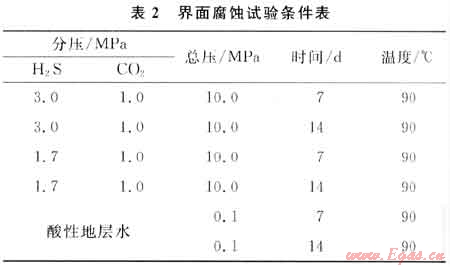 因此,筆者提出界面腐蝕的概念,并提出如下試驗方案(由于川渝氣田含硫氣井井下主要的腐蝕介質(zhì)是H2S和C02等[4~5],因此腐蝕試驗條件主要考慮此兩種酸性氣體):