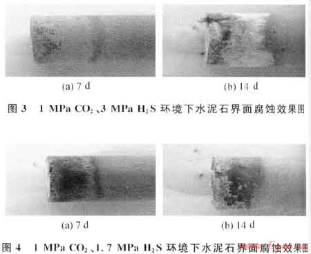 通過界面腐蝕的試驗方法,對井下水泥環(huán)受H2S、C02等酸性氣體腐蝕的機理進行了分析,得到如下結(jié)論和建議: