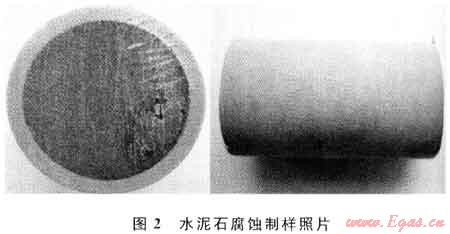 通過對目前國內(nèi)外開展的水泥石抗酸性介質(zhì)腐蝕能力的文獻資料調(diào)研,發(fā)現(xiàn)以往的腐蝕實驗均是采用將水泥石樣完全浸泡在酸性環(huán)境下進行試驗的實驗手段[1~3],但實際上,井下水泥環(huán)受到腐蝕是從氣層和水泥環(huán)的接觸界面開始的,而并非水泥環(huán)整體同時受到腐蝕,因此以往水泥石受酸性氣體腐蝕的實驗結(jié)果與實際情況并不完全吻合。