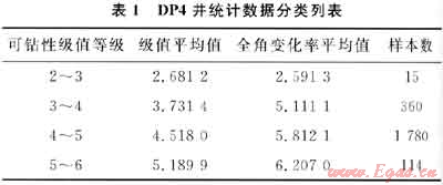 研究分析地層物性條件對水平井井眼軌跡的影響規(guī)律,至少需要解決2個問題:①地層物性條件的標識問題,即如何將地層的各種物性特征按照統(tǒng)一標準歸類、分級;②如何建立地層物性條件與井眼姿態(tài)參數(shù)(井斜角、方位角)的對應關(guān)系。其中,地層物性條件的標識問題可以從眾多的地層可鉆性分級方法中優(yōu)選;而對于第二個問題則可以利用統(tǒng)計分析的方法建立某一區(qū)塊特定鉆具組合在復合鉆進方式下的鉆進特性與地層物性的統(tǒng)計關(guān)系予以解決。