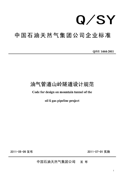 《油氣管道山嶺隧道設(shè)計(jì)規(guī)范》Q/SY 1444-2011本標(biāo)準(zhǔn)給出了油氣管道山嶺隧道的分級(jí)與分類、 隧道調(diào)查和勘察、 總體設(shè)計(jì)、 荷載、 洞口與洞門、襯砌結(jié)構(gòu)設(shè)計(jì)、 結(jié)構(gòu)計(jì)算、 抗震設(shè)計(jì)、 防水與排水、 輔助工程措施和管道及配套設(shè)計(jì)要求, 適用于以礦山法施工的新建油氣管道山嶺隧道工程。 不適用于油氣管道水域隧道工程。
