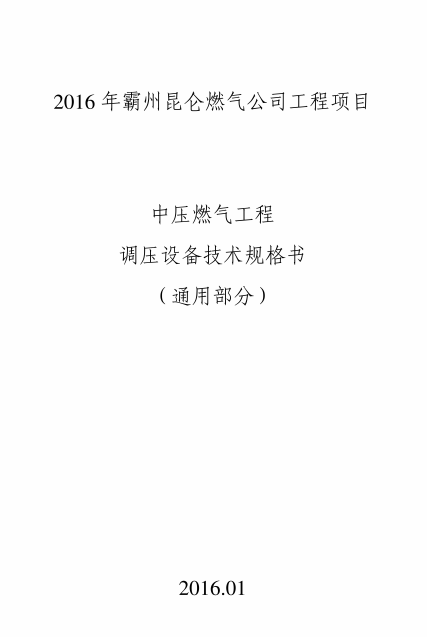 昆侖燃氣中壓燃氣工程調(diào)壓設(shè)備技術(shù)規(guī)格書