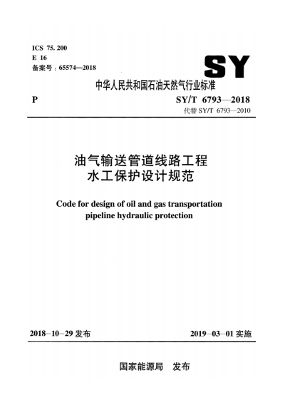 油氣輸送管道線路工程水工保護設(shè)計規(guī)范石油天然氣標準/T 6793-2018