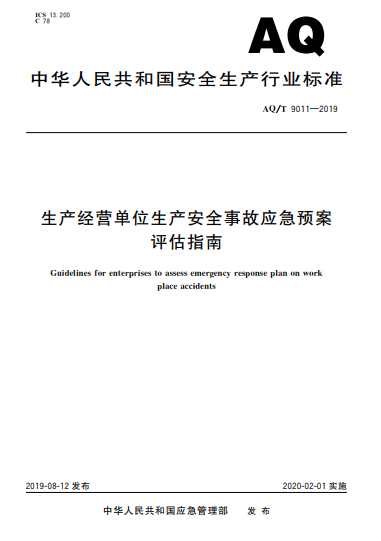 生產(chǎn)經(jīng)營(yíng)單位生產(chǎn)安全事故應(yīng)急預(yù)案評(píng)估指南AQ/T 9011-2019