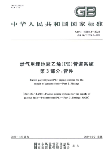 燃氣用埋地聚乙烯(PE)管道系統(tǒng) 第3部分:管件GB/T 15558.3-2023