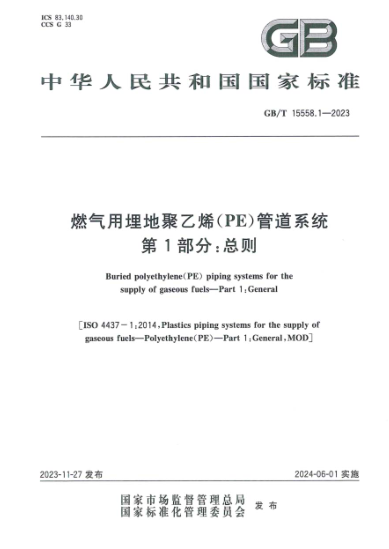 燃?xì)庥寐竦?a href=http://m.jzdxkj.com/e/tags/?tagname=%E8%81%9A%E4%B9%99%E7%83%AF target=_blank class=infotextkey>聚乙烯(PE)管道系統(tǒng) 第1部分:總則GB/T 15558.1-2023